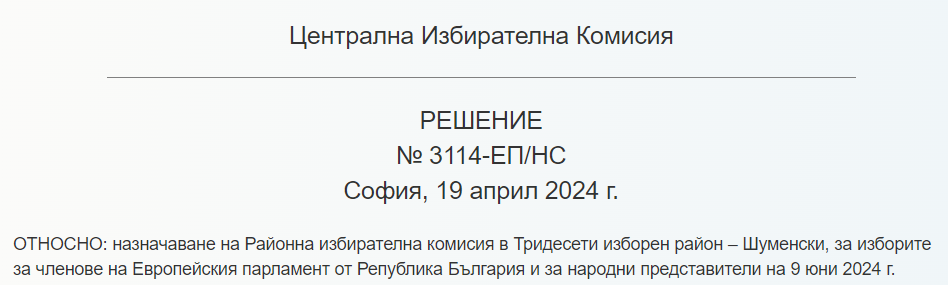 С Решение № 3114-ЕП/НС от 19.04.2024 г. Централтата избирателна комисия окончателно определи състава на Районната...